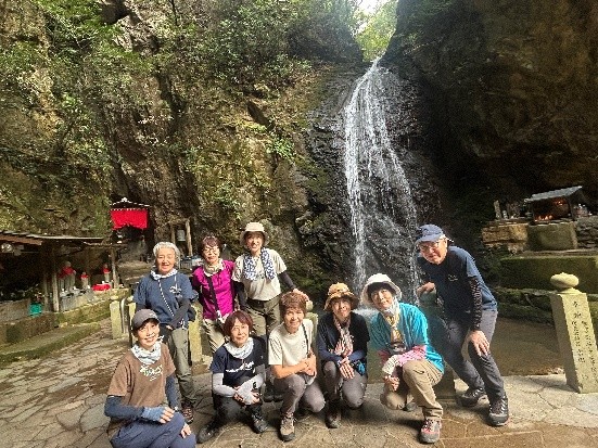 阪急山本駅で集合し、近くの公園で体操、自己紹介の後、出発した。最明寺滝は、昨日までの雨の為か水量も多く独特な雰囲気を醸し出していた。