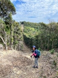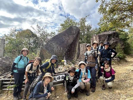 和歌山県日高といえば私の祖父母が住んでいた田舎で、現在もいとこ達が住んでいる小さい頃の思い出がいっぱい詰まった場所。祖父母の家の周辺の山・川はいとこ達と駆け回っていたのですが、真妻山はまだ登ったことがなくいろんな思いを持ちながら参加させていただきました。登りはなかなか急登で滑りやすい落ち葉に気をつけて頑張りました。フラットな場所や休憩場所は弾んだ会話に花がわんさと咲きましたが急登中はみんな静かに黙々と登りました。