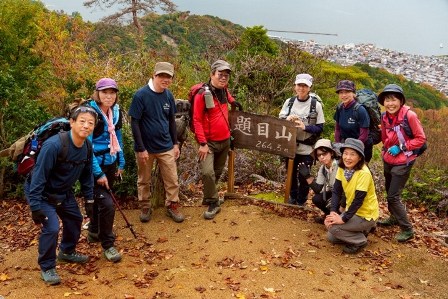 お天気が心配でしたが、結果的には、曇り時折日が差す絶好の山日和でした。前回5月の平荘湖アルプス企画の第2弾で、12座中残り5座の踏破企画でした。低山ながら、急登あり、岩場あり、瀬戸内の眺めよしの楽しいコースでした。100mほど登っただけで、周りを見渡せ高度感を感じられて、なんかお得。他の会の方との登山は初めてでしたが、みなさん小規模な会ならでは、とってもアットホーム。やっぱりみんな山が好き。食事しながらもいいけど、登山中の話も盛りあがりますね。
